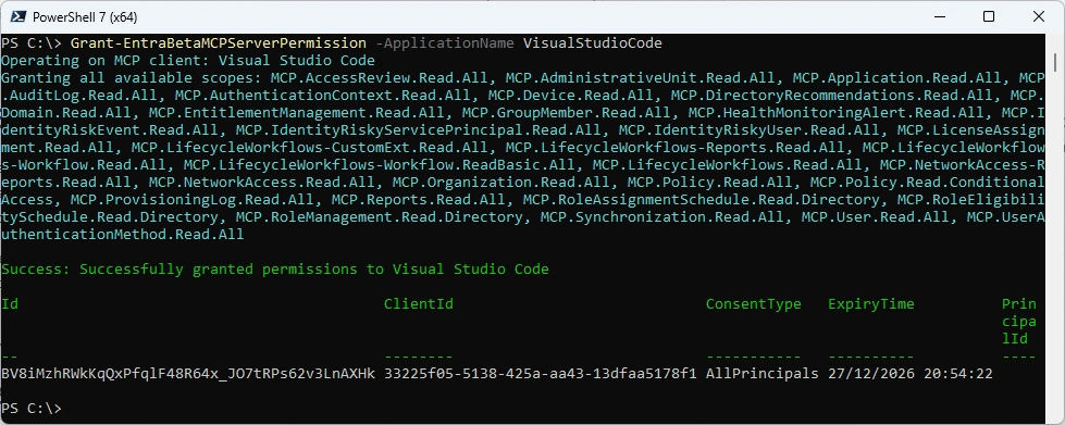 Grant-EntraBetaMCPServerPermission -ApplicationName VisualStudioCode