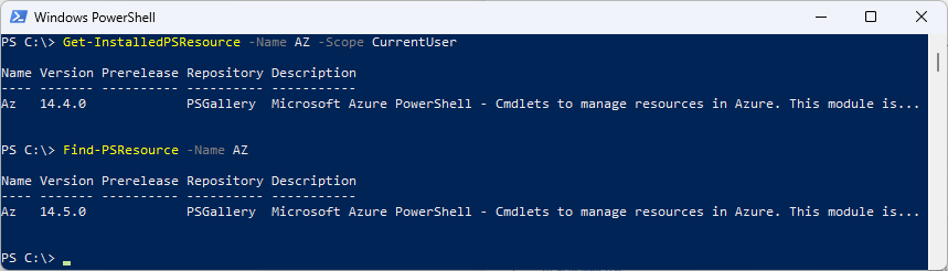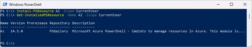 Get-InstalledPSResource -Name AZ -Scope CurrentUser