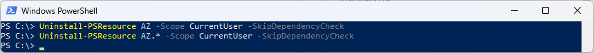 Uninstall-PSResource AZ.* -Scope CurrentUser -SkipDependencyCheck