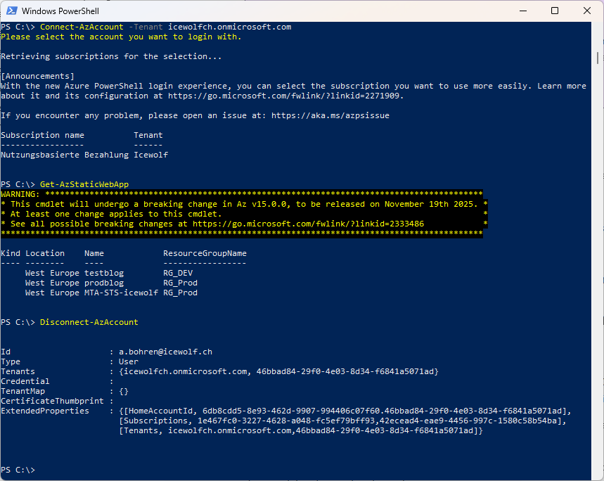 Connect-AzAccount -Tenant icewolfch.onmicrosoft.com