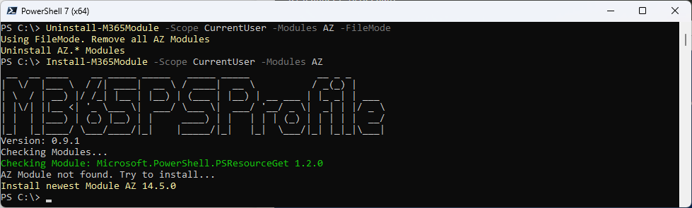 Uninstall-M365Module -Scope CurrentUser -Modules AZ -FileMode