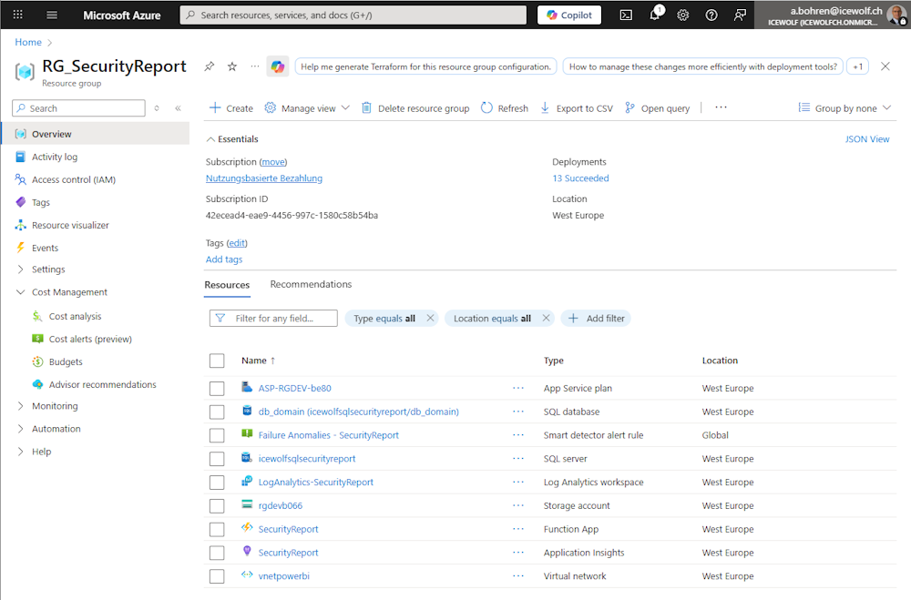 These are the Azure Resources used for the Report
