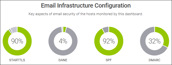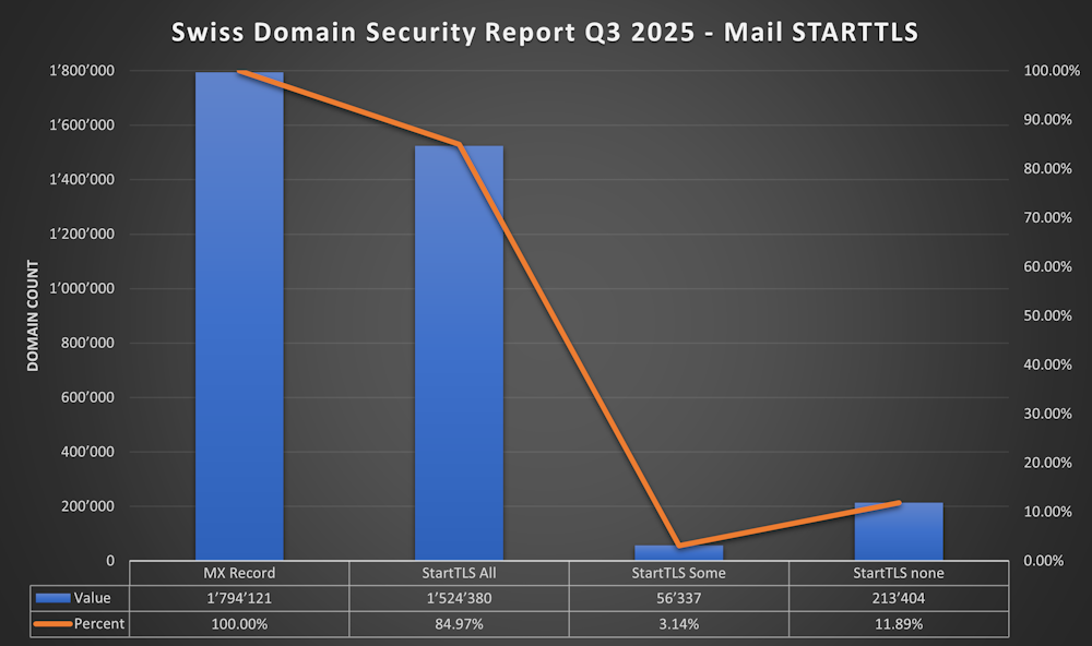 - STARTTLS is between 85% and 89%. That’s impressive - but there are still about 11% that does not support STARTTLS - the goal should be 100%