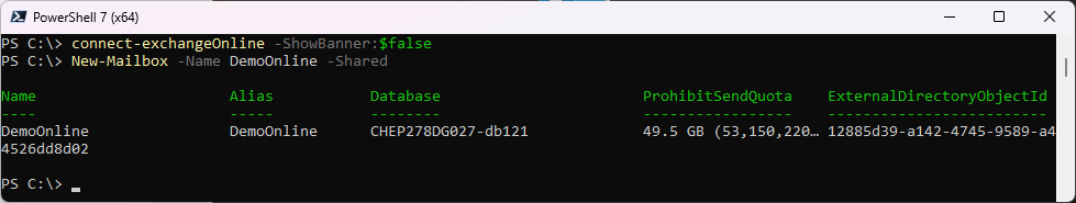 New-Mailbox -Name DemoOnline -Shared
