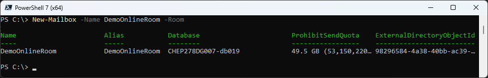 New-Mailbox -Name DemoOnlineRoom -Room