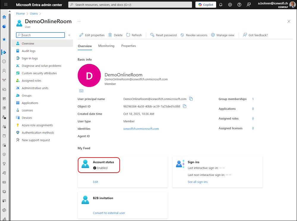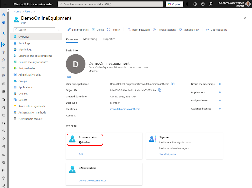 It’s best Practice that Exchange Online Shared Mailboxes have disabled Entra ID Accounts. Good to see this. There are some specialities for Room Mailboxes, when it comes to Teams Rooms, but default should be also a disabled Entra ID Account. For Equiment Mailboxes i don’t see any reason for an enabled Entra ID Account.