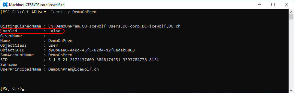 Get-ADUser -Identity DemoOnPrem