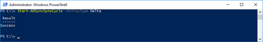 Start-ADSyncSyncCycle -PolicyType Delta