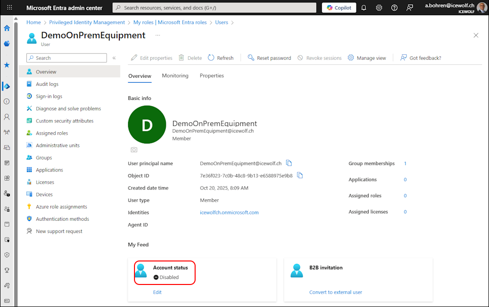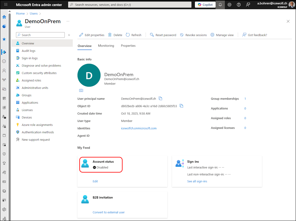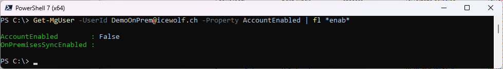 Get-MgUser -UserId DemoOnPrem@icewolf.ch -Property AccountEnabled | fl *enab*