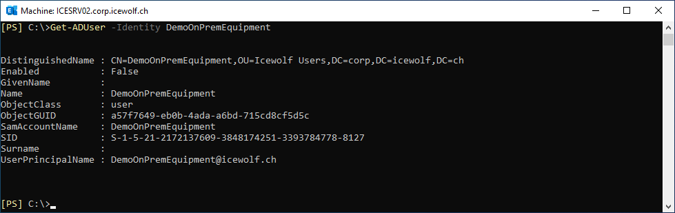 Get-ADUser -Identity DemoOnPremEquipment