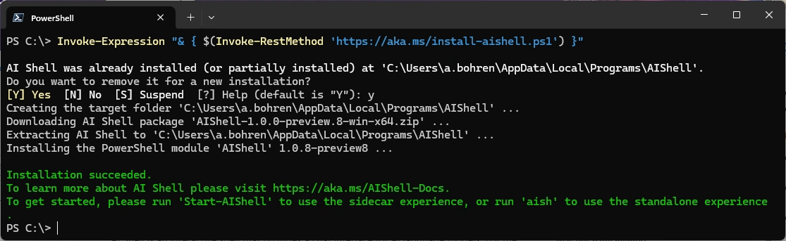 Invoke-Expression "& { $(Invoke-RestMethod 'https://aka.ms/install-aishell.ps1') }"