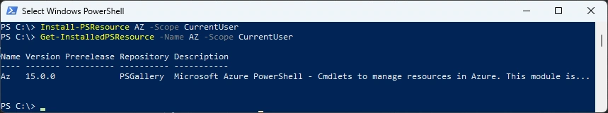 Install-PSResource AZ -Scope CurrentUser