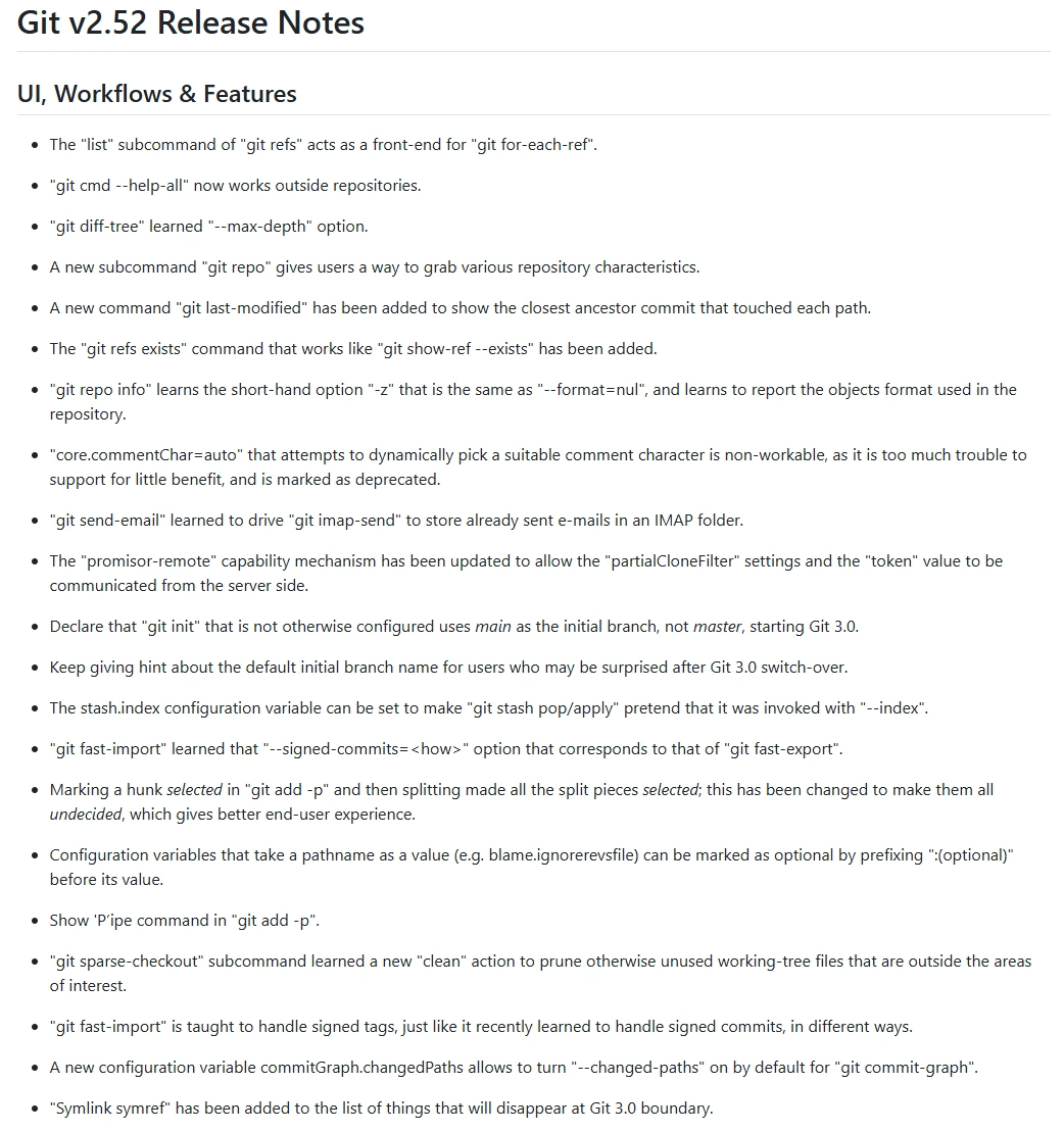 Today i saw that git has been updated to 2.52.0.