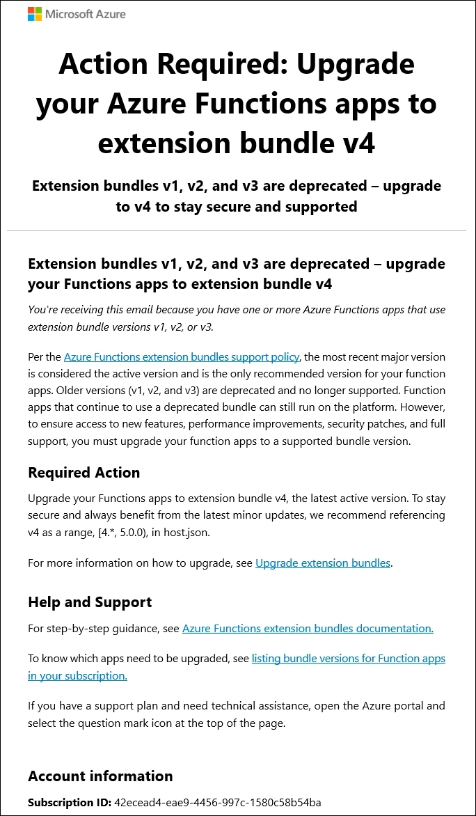 # Update AzureFunction ExtensionBundle Version