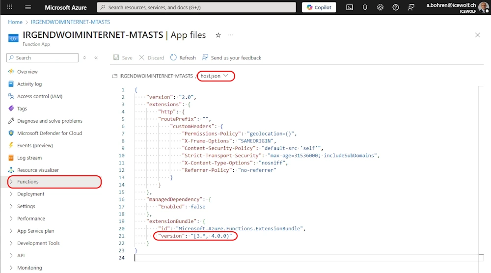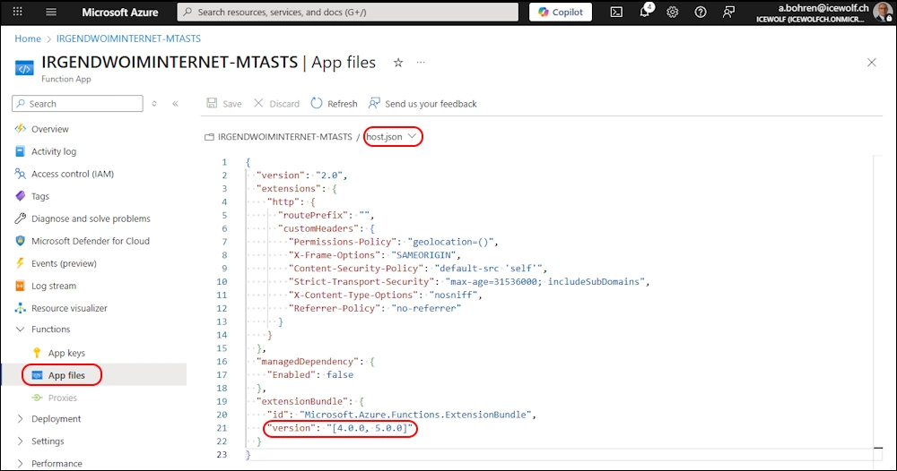 Now we got what we needed and here is the Function to update the ExtensionBundle of an Azure Function