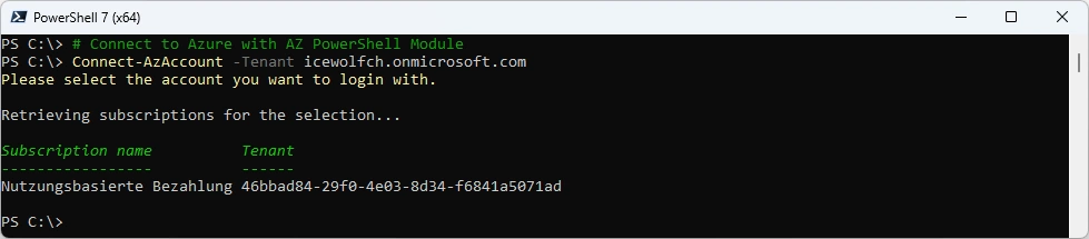 Connect-AzAccount -Tenant icewolfch.onmicrosoft.com