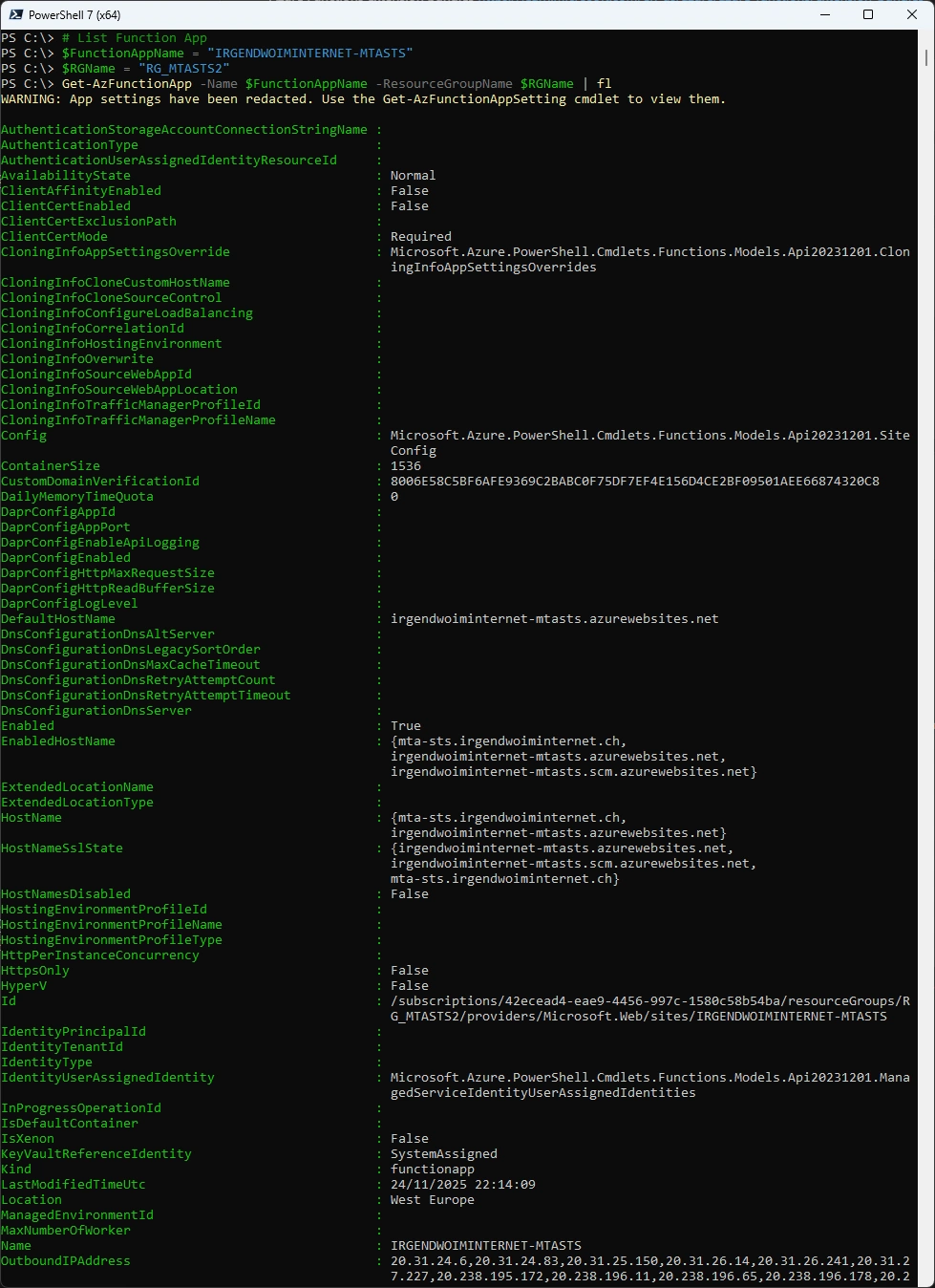 $FunctionAppName = "IRGENDWOIMINTERNET-MTASTS"