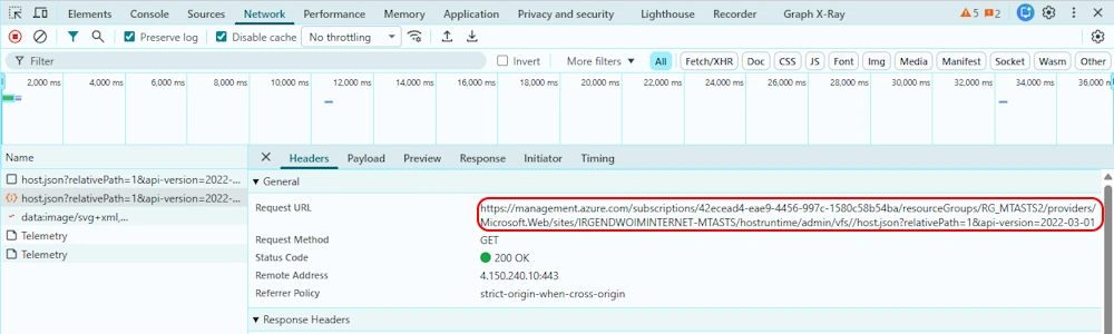 I’ve checked in the Azure Portal with the Developer Tools