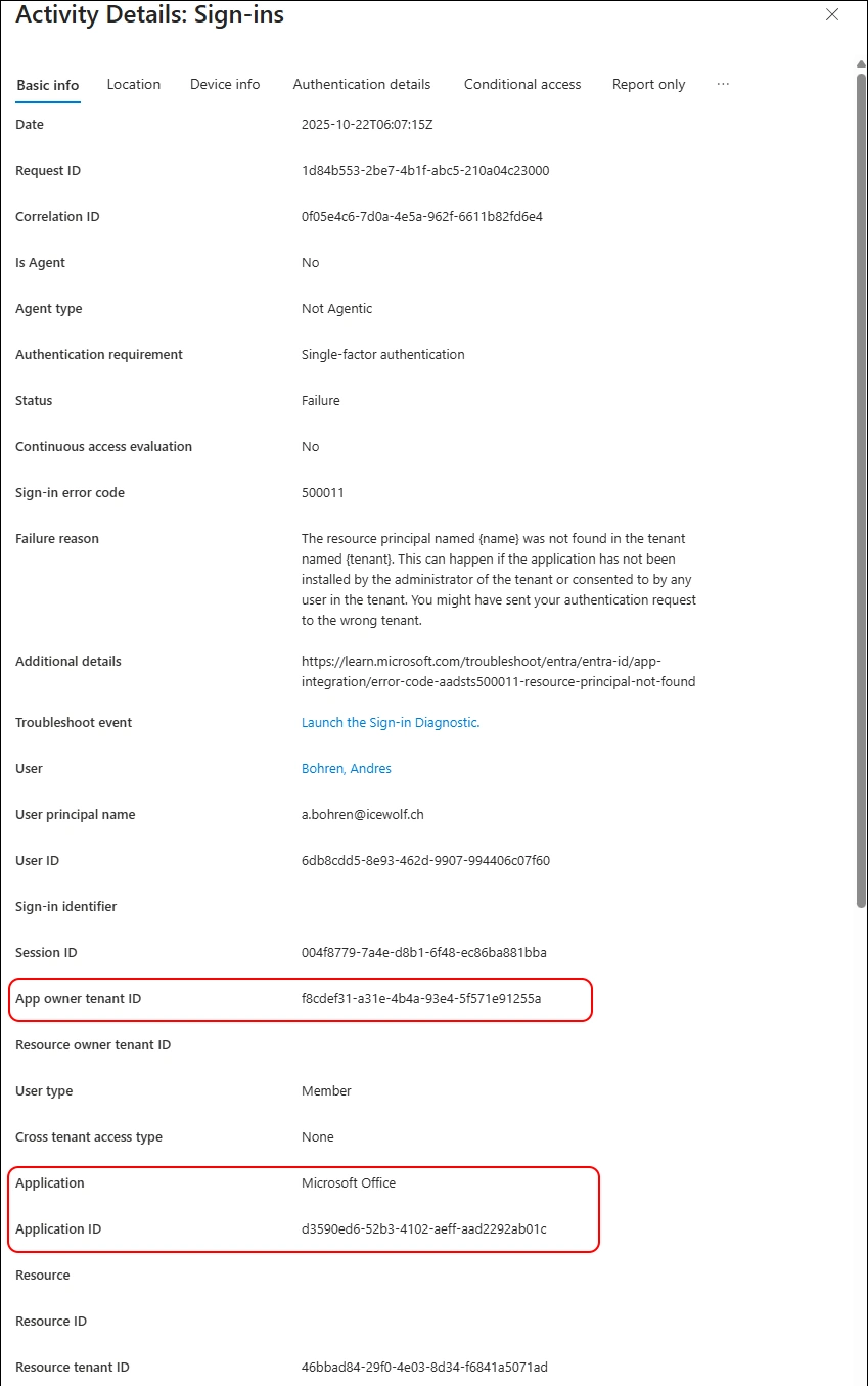 I’ve searched for the Correlation Id in the Entra SignIn Logs and found this