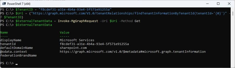 $ExternalTenantData = Invoke-mgGraphRequest -Uri $Uri -Method "GET"