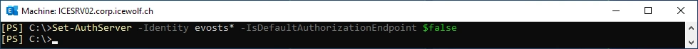 Set-AuthServer -Identity evosts* -IsDefaultAuthorizationEndpoint $false