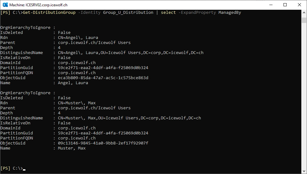 Let’s add a Manager with the Set-DistributionGroup -ManagedBy