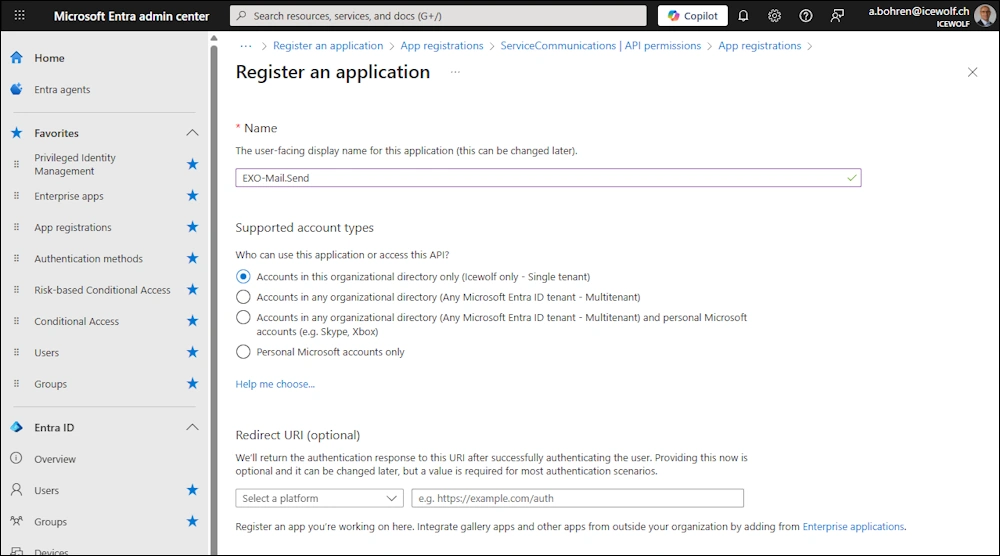 $DisplayName = "EXO Serviceprincipal EXO-Mail.Send"