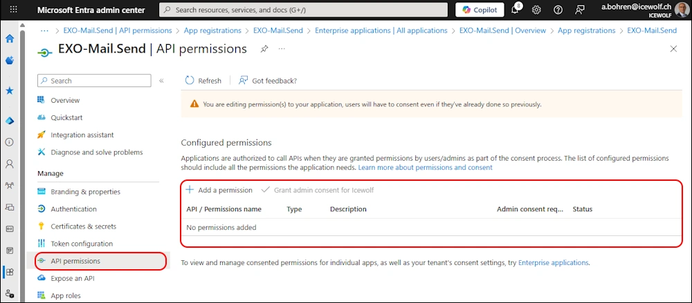 No API Permissions needed on the Entra App - you assign this directly in Exchange Online