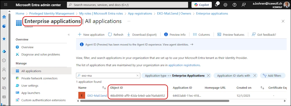 # Create Exchange Service Principal with ObjectID from Enterprise App