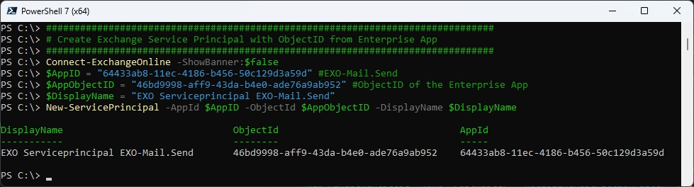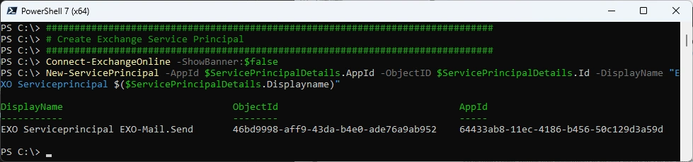 and then use that Information from Graph to create the ServicePrincipal in Exchange Online