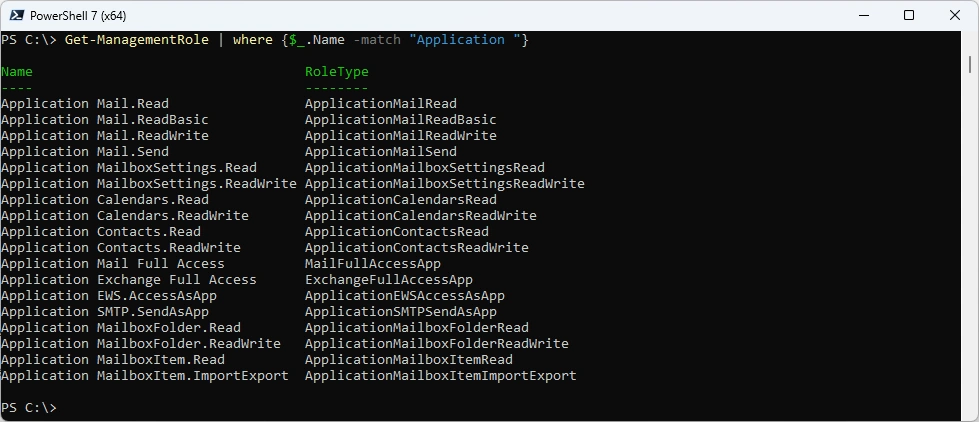Get-ManagementRole | where {$_.Name -match "Application "}