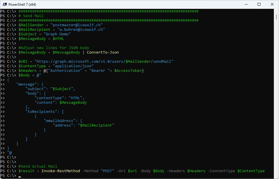 $URI = "https://graph.microsoft.com/v1.0/users/$MailSender/sendMail"