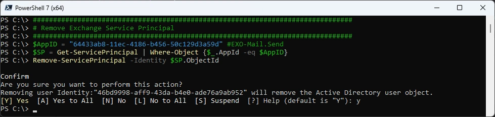 Remove-ServicePrincipal -Identity $SP.ObjectId
