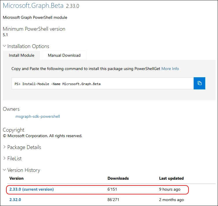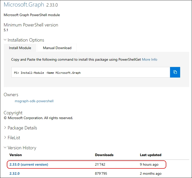 - PowerShell Gallery Microsoft.Graph 2.33.0