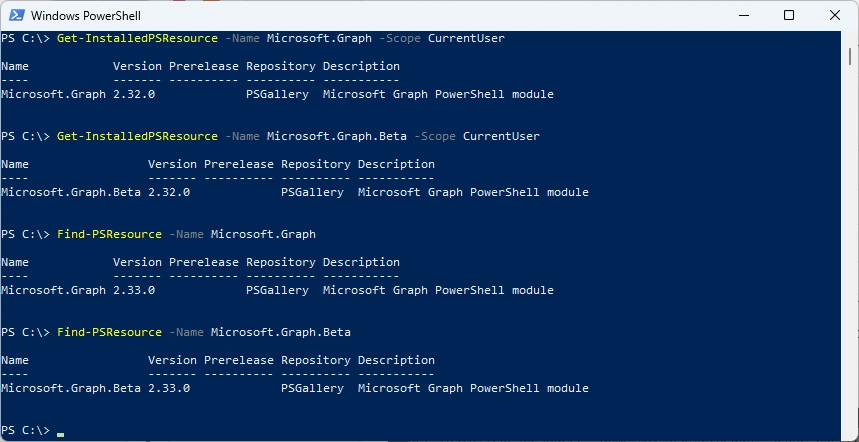 Get-InstalledPSResource -Name Microsoft.Graph.Beta -Scope CurrentUser