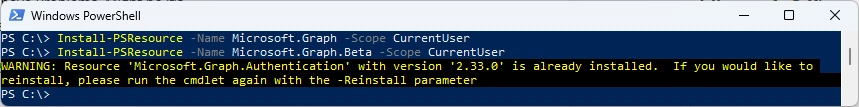 Install-PSResource -Name Microsoft.Graph -Scope CurrentUser