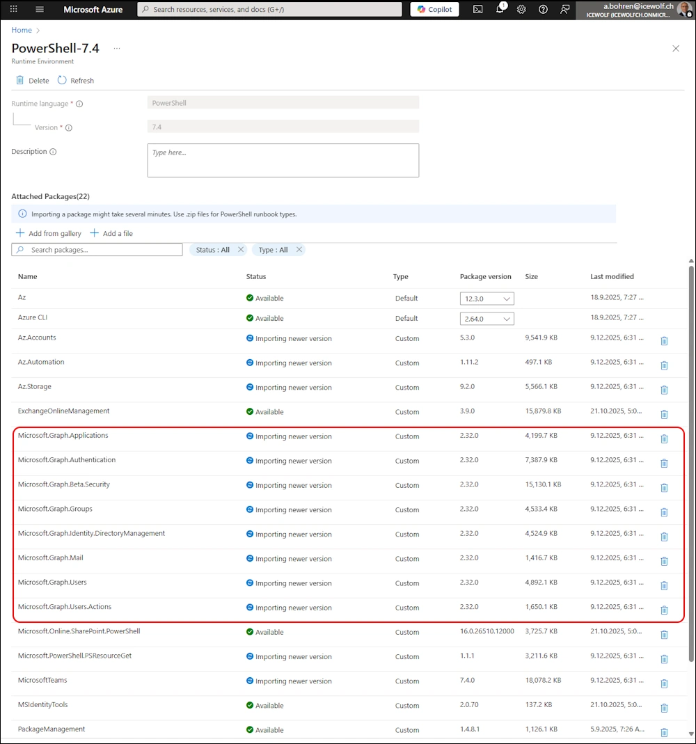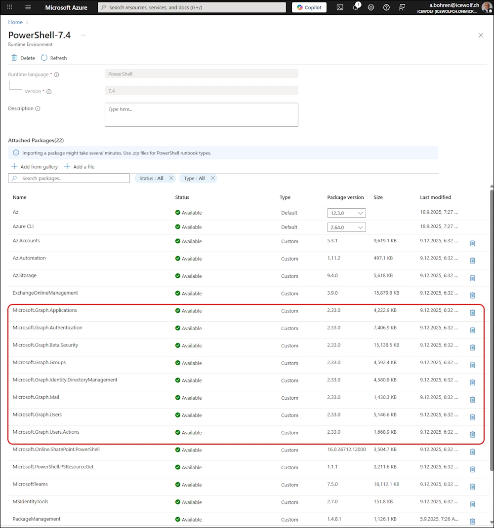 Don’t forget to update the Microsoft.Graph Modules on Azure Automate