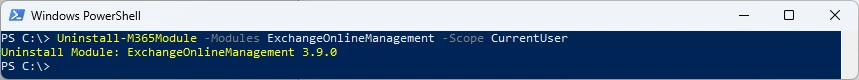 Uninstall-M365Module -Modules ExchangeOnlineManagement -Scope CurrentUser -FileMode