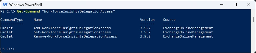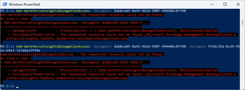 Add-WorkforceInsightsDelegationAccess -Delegator 6db8cdd5-8e93-462d-9907-994406c07f60 -Delegate ff18c35d-8cd9-45ce-b4e3-7e7abe13ff4e