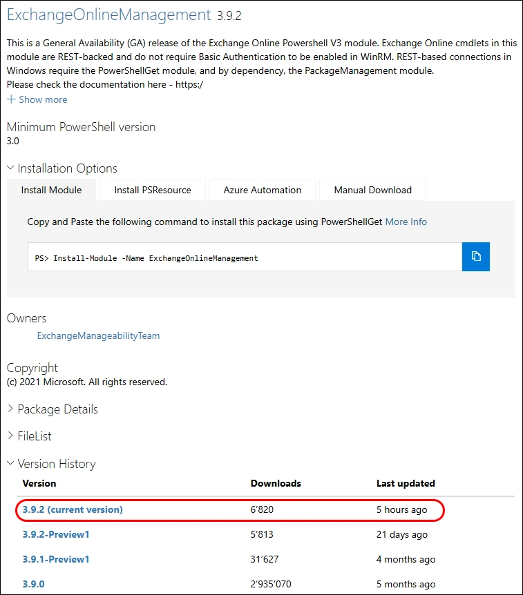 - PowerShell Gallery ExchangeOnlineManagement 3.9.2