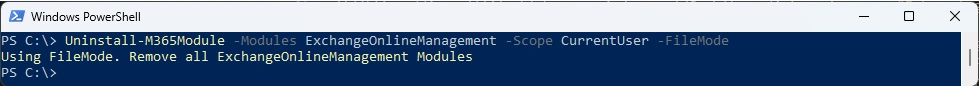 Uninstall-M365Module -Modules ExchangeOnlineManagement -Scope CurrentUser -FileMode