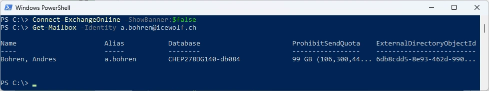 Get-Mailbox -Identity a.bohren@icewolf.ch