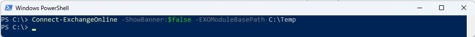 Connect-ExchangeOnline -ShowBanner:$false -EXOModuleBasePath C:\Temp