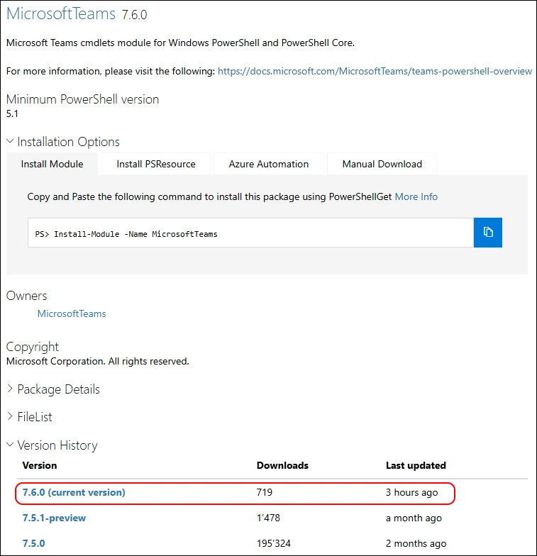 - PowerShell Gallery MicrosoftTeams 7.6.0