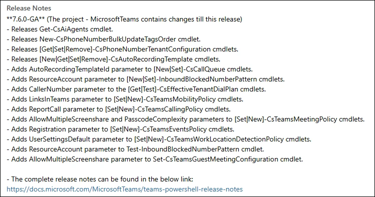 MicrosoftTeams PowerShell Module 7.6.0 released