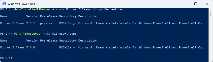 Get-InstalledPSResource -Name MicrosoftTeams -Scope CurrentUser