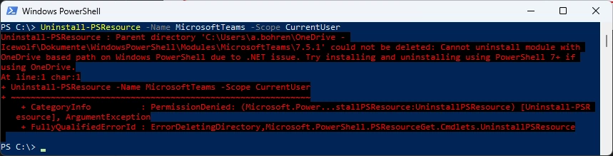 Uninstall-PSResource -Name MicrosoftTeams -Scope CurrentUser