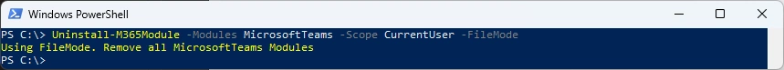 Uninstall-M365Module -Modules MicrosoftTeams -Scope CurrentUser -FileMode
