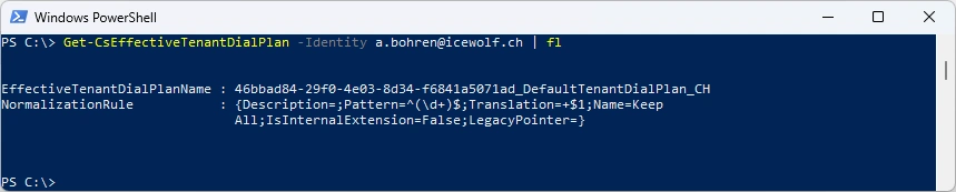 Get-CsEffectiveTenantDialPlan -Identity a.bohren@icewolf.ch | fl