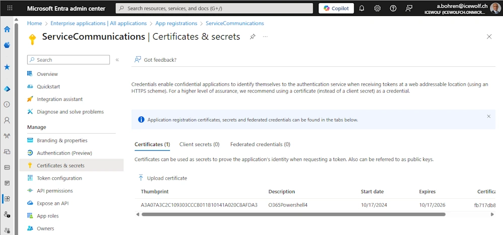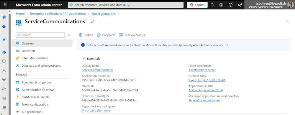 $AppID = "29581967-458b-4c7a-a4f7-03fa440c0e13" #ServiceCommunications